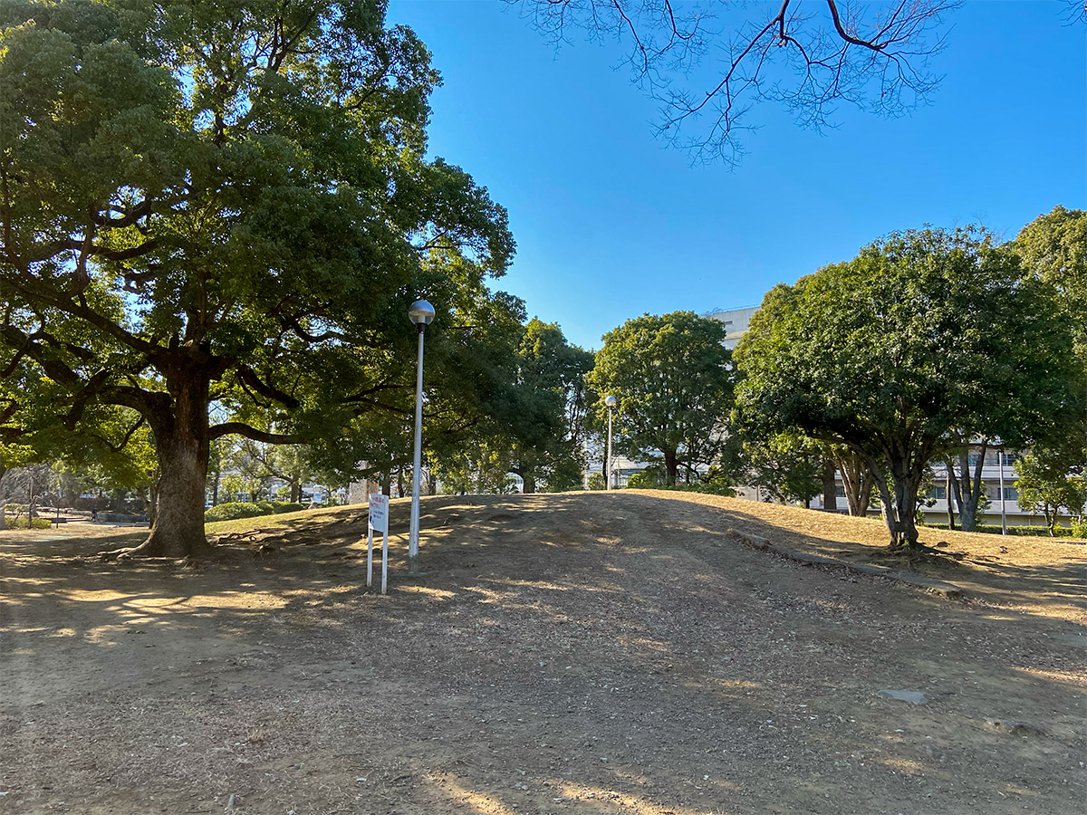 催し物広場の前には急斜面の芝生。登ってみたら野球場でした!