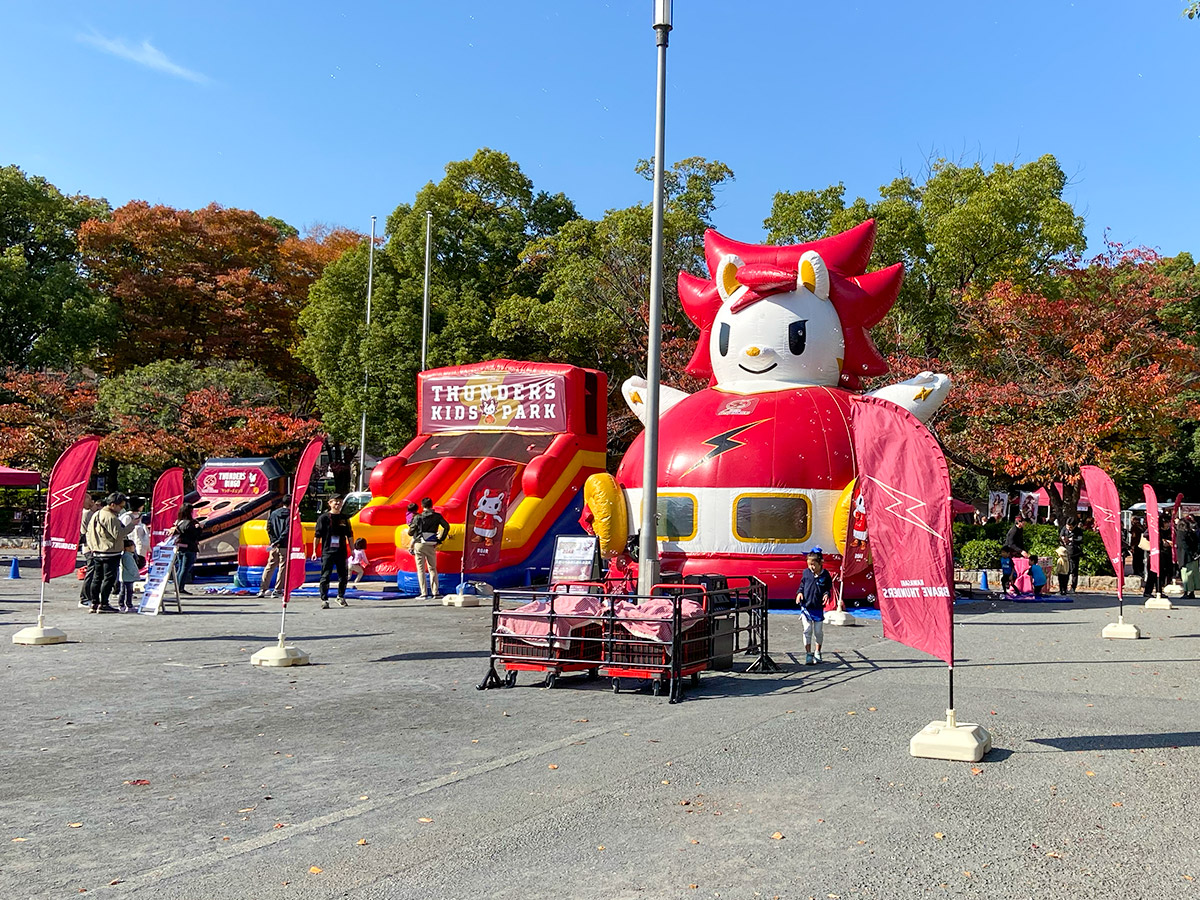 なお、この日はBリーグ「川崎ブレイブサンダース」のホームゲームが開催される日だったようで、とどろきアリーナ前はマスコットの「ロウル」で装飾されていました。