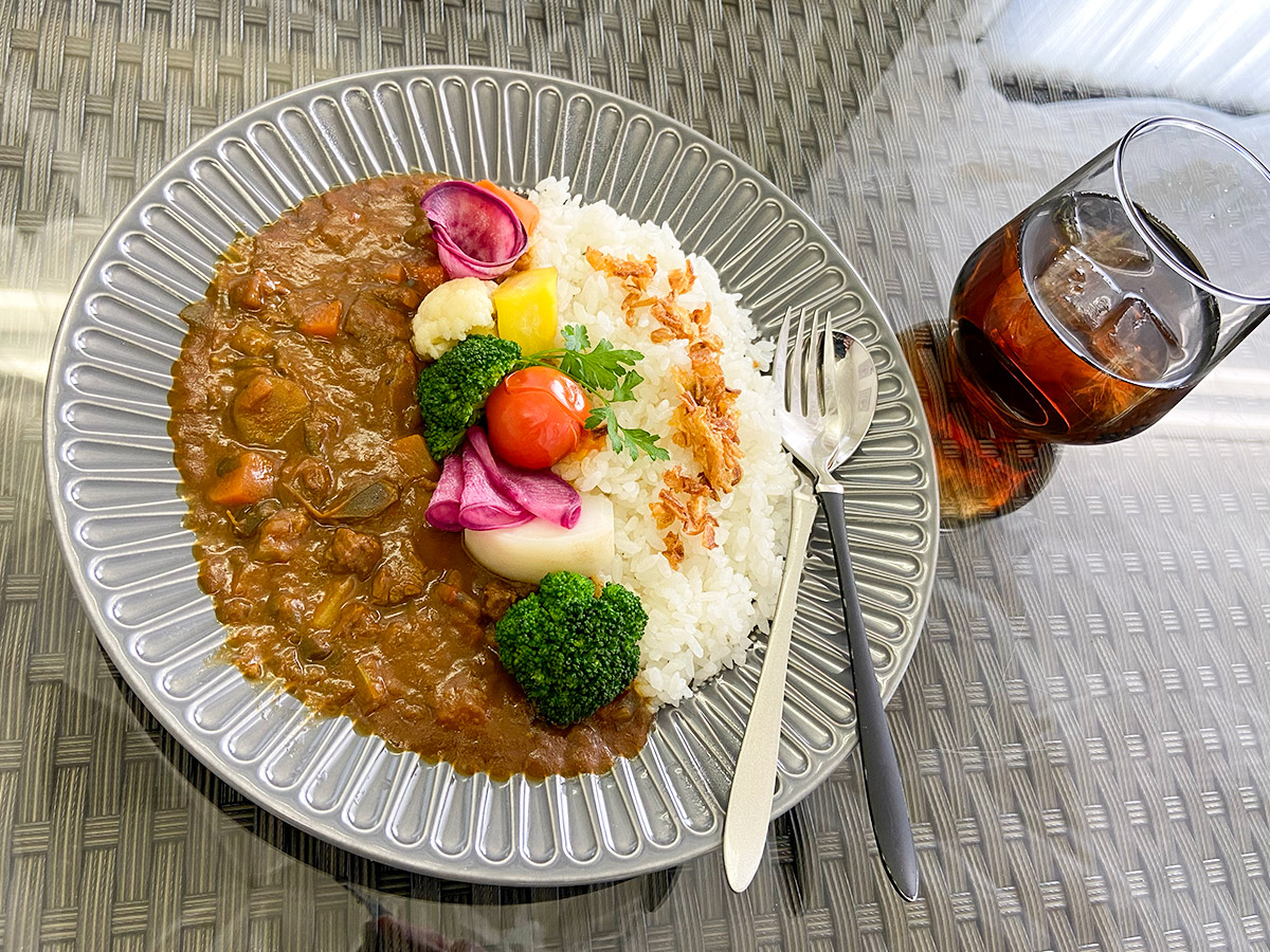 私がいただいたカレーは、スパイシーさは控えめ、どこか懐かしさを感じるようなやさしい味わいでした。お野菜もお肉も丁寧に一口大にカットされていて、とても食べやすい印象。