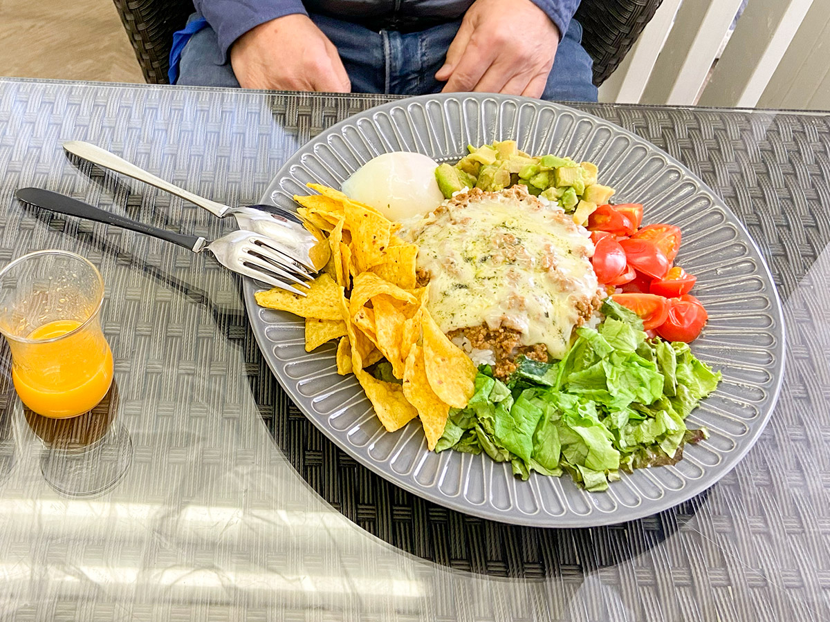 Nさんが食べていたタコライスは、彩りがきれいな一皿。シャキッとした野菜とお肉、チーズの組み合わせで、見た目以上にしっかり満足感があったようでした。