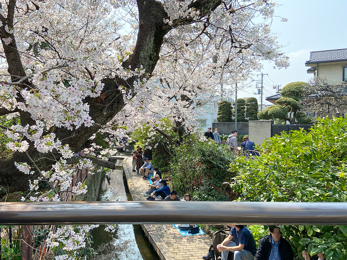 用水路沿いにシートを広げてお花見している人たちもいて、のんびりした空気が流れていました。